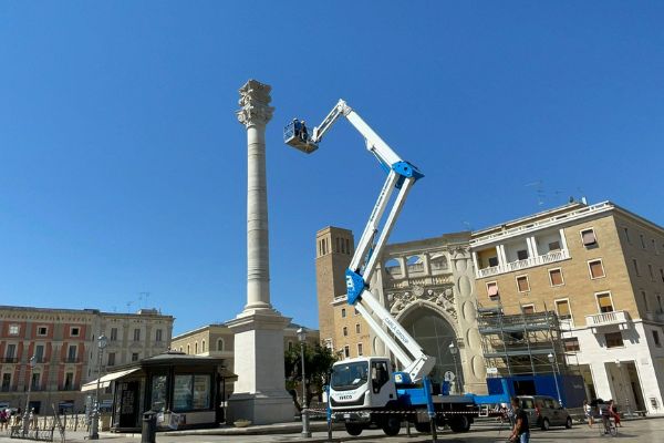 Questa mattina, è stato effettuato un sopralluogo con carrello elevatore sulla colonna romana di Piazza Sant'Oronzo da parte dei tecnici della Fonderia Nolana Del Giudice insieme ai consulenti del Dipartimento di Beni Culturali e del Dipartimento di Ingegneria dell'Università del Salento per acquisire le ultime informazioni in vista della presentazione del progetto definitivo della copia della statua del santo patrono alla Soprintendenza.